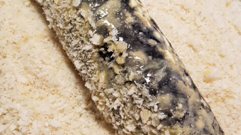 - Die Lachsrollen, wie bei einem Schnitzel, nacheinander in Mehl (gut abklopfen), Ei und Panko wenden